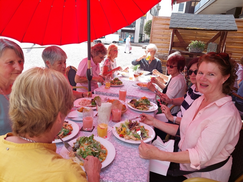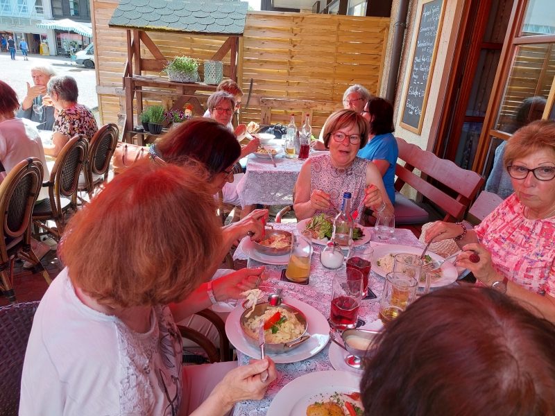 Nach der langen Corona-Pause konnten wir endlich wieder einen Ausflug durchführen. Bei strahlenddm Sonnenschein starteten wir mittags mit der S-Bahn, mit der wir nach Gaggenau fuhren. Dort angekommen liessen wir uns ein leckeres Mittagessen schmecken. Anschliessend bummelten wie durch den Murgpark und die Fussgängerzone und liessen uns ein kühles Eis schmecken. Einige nutzten auch die vorhandenen Einkaufsmöglichkeiten. Gegen Abend brachte uns die S-Bahn wieder nach Forbach zurück.