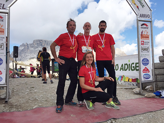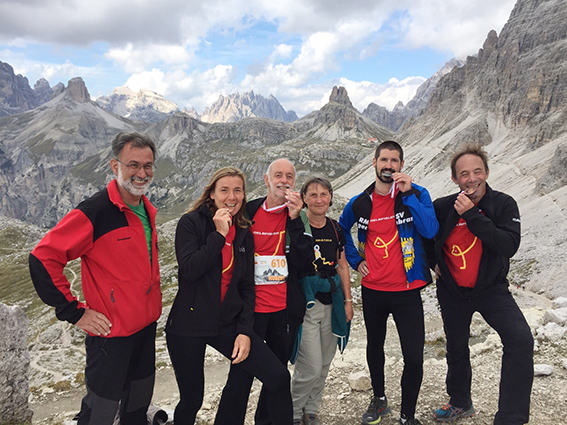 Am Ende haben alle unsere 4 tapferen Kämpfer, Hubert und Felix Reinbold, Anna Schaub und Harald Efthymiou das Ziel an der 3 Zinnen Hütte erreicht. Zusammen mit einer kleinen Schar von Schlachtenbummlern trat man den Rückweg zum Begleitfahrzeug an. Dies war aber immerhin auch noch ein 1,5 stündiger Weg bis zur nahegelegenden Passstrasse an der Auronzohütte, bevor man dann die Rückfahrt zur Siegerehrung in Sexten antreten konnte. Alles in allem eine gelungene Aktion.