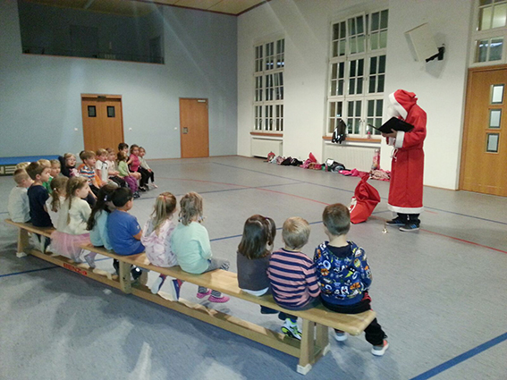 Mit dem Versprechen nächstes Jahr selbstverständlich wiederzukommen wurde er von den Kindern mit einem Weihnachtslied entlassen.