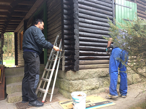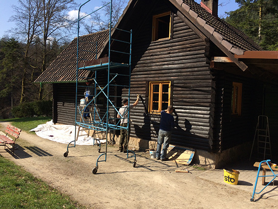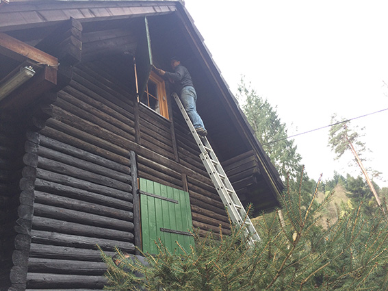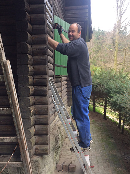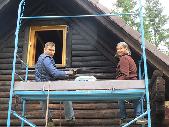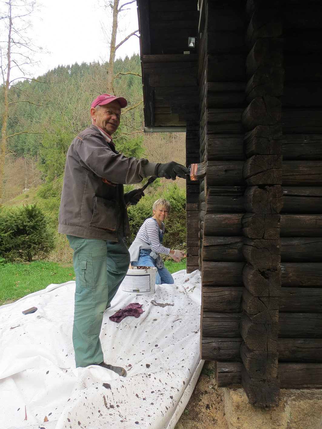 Auch das Wetter machte mit, es konnte die gesamte Hütte, Fensterläden und Eingangstür gestrichen werden.