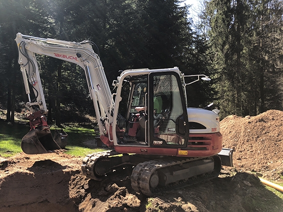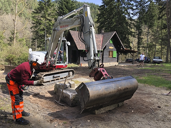 Ohne Manuel Fritz den Künstler am Bagger, der sein Arbeitsgerät perfekt und geduldig bediente und seinen Vater Alois Fritz, der seinen Truck beladen mit Steinen gekonnt den engen Hang hinunter manövrierte, wäre der Arbeitseinsatz nicht möglich gewesen.
