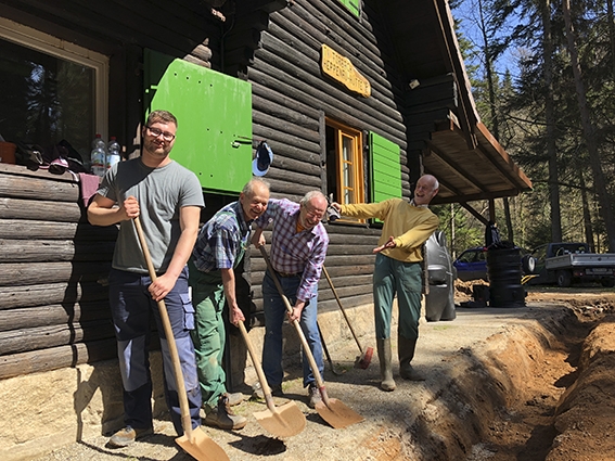 Kurz vor Saisonbeginn mussten noch einige technische Verbesserungen an der Hütte und die Anlage einer neuen Grillstelle erledigt werden.