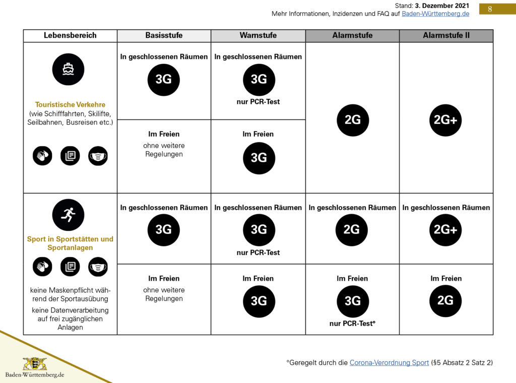Momentan befinden wir uns in der Alarmstufe 2, da unsere Kurse alle in geschlossenen Räumen stattfinden, dürfen ab sofort nur noch Sportler 2G+ an unseren Kursen teilnehmen.