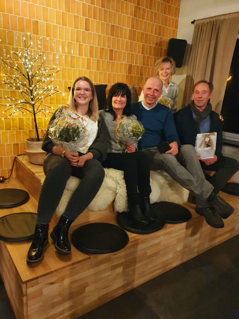 Dort verbrachten alle einen schönen, gemütlichen Abend. Mit von der Partie waren der Turnrat, die Vorstände und unsere fleißigen, verlässlichen Helfer, die uns über das Jahr bei vielen Arbeiten zur Seite standen. Der Vorstand bedankte sich mit einem kleinen Präsent bei unseren Trainern für ihre ehrenamtliche Arbeit und ihr Engagement. Frank überreichte im Namen des Turnrates ein kleines Präsent an die Vorstände Silvia, Harald und Henrik und an unsern Kassier Dorothea und unsere neu gewählte Schriftführerin Lilly, worüber sich alle sehr freuten.