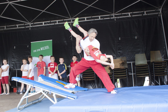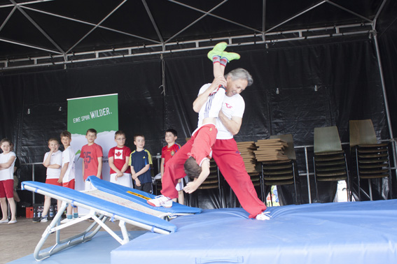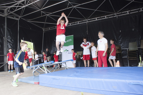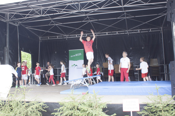 Die Mädchen von Yuliyas Tanzgruppe bezauberten mit tollen Tänzen und farbenfrohen Kostümen das Publikum. Yuliya animierte mit heißen Zumba Rhythmen das Publikum zum Mitmachen, allerdings wagten sich nur die Mutigsten auf die Bühne. Bestaunt von Jung und Alt vollführten die Turner/innen von Wolfgang auf der Bühne waghalsige Salti und Überschläge, auch Wolfgang ließ es sich nicht nehmen, angefeuert von seinen Jungturnern, sein turnerisches Können zu zeigen.