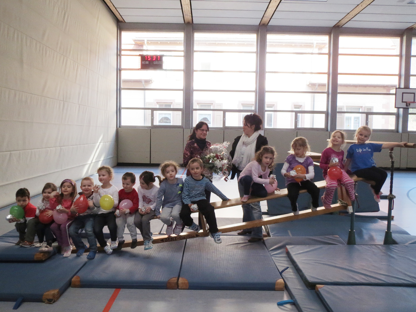 Am vergangenen Freitag, 22.03. hat das beliebte Kinderturnen bei Brigitte Bach zum letzten Mal stattgefunden. Jedes Kind bekam von Brigitte einen Muffin und einen Luftballon zum Abschied. Brigitte betreute über 17 Jahre die 3 bis 6-jährigen Kinder in unserem Verein. Nach einem Aufwärmlied, wurden die Kleinen behutsam an die verschiedenen Geräte herangeführt. Bei einem Abschlussspiel konnten sich dann alle noch mal so richtig verausgaben. Liebe Brigitte, die Kinder sind gerne zu Dir ins Turnen gekommen. Wir möchten uns an dieser Stelle für dein jahrelanges Engagement herzlich bedanken.